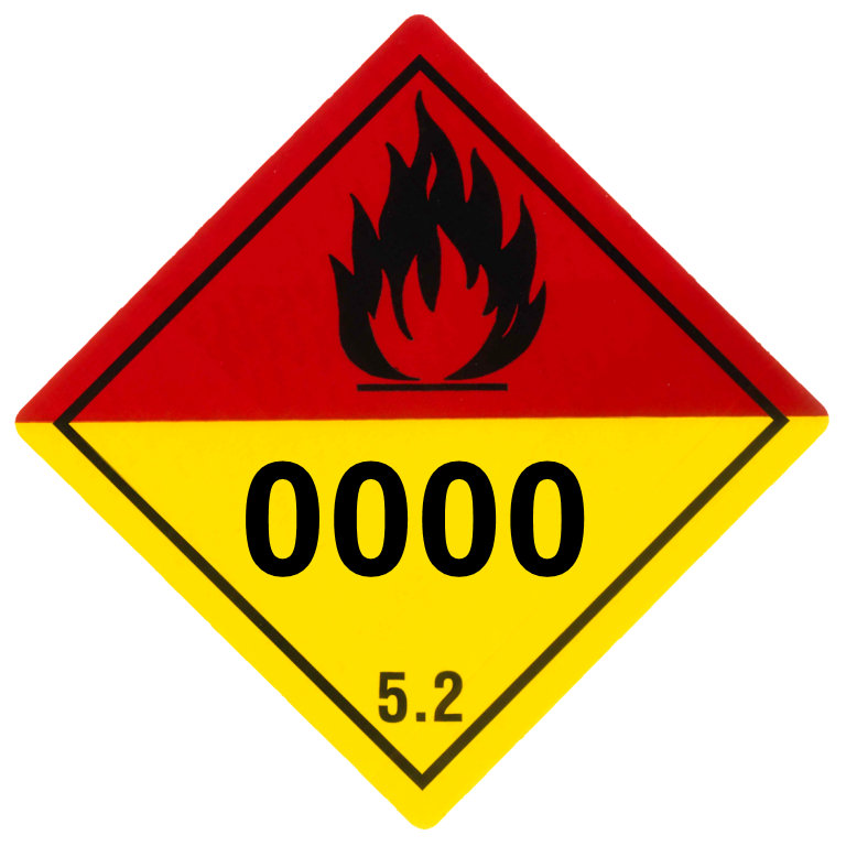 Gefahrgutaufkleber für die Gefahrgutklasse 5, Unterklasse 5.2 mit individuellen UN-Nummern-Eindruck.