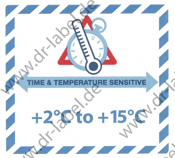 Gefahrguteteikett "TIME & TEMPERATURE SENSITIV" mit Temperatureindruck "+2°C to +15°C"
