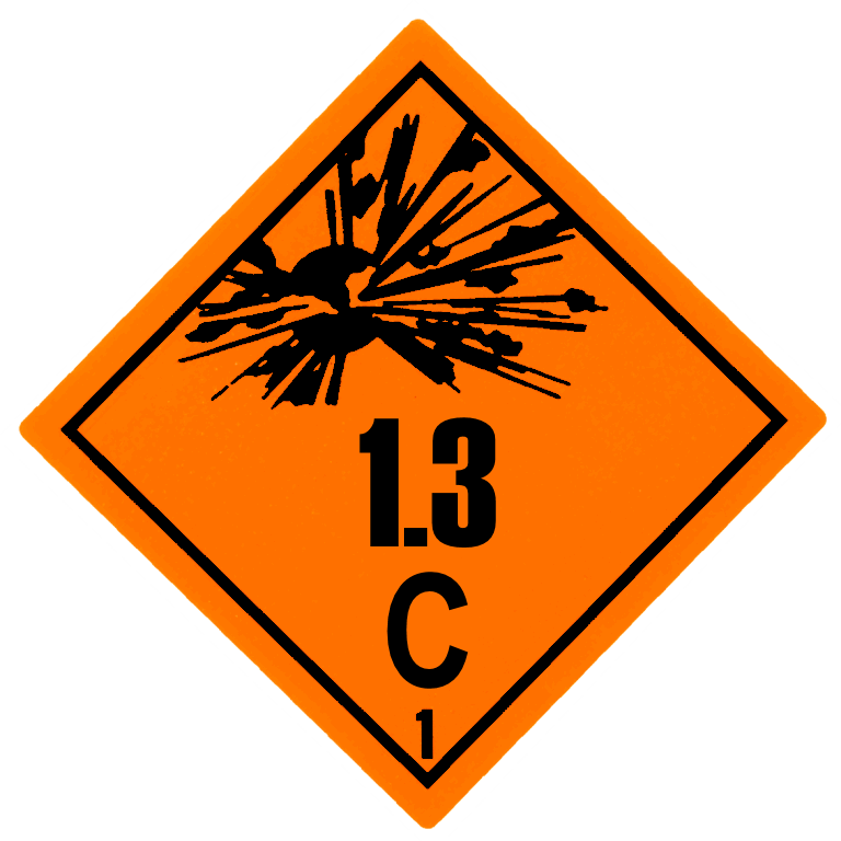 Die Gefahr der Klasse 1 bezeichnet explosive Stoffe und Gegenstände mit Explosivstoff, bei der Unterklasse 1.3 sind diese nicht massenexplosionsfähig, aber es besteht Feuergefahr und eine geringe Gefahr der Bildung von Splittern, Wurf- und Sprengstücken. Die Verträglichkeitsgruppe C bezeichnet Treibstoff oder anderer deflagrierender explosiver Stoff