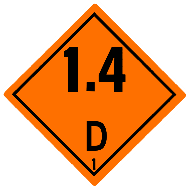 Die Gefahr der Klasse 1 bezeichnet explosive Stoffe und Gegenstände mit Explosivstoff, die Unterklasse 1.4 bezeichnet Stoffe mit einer geringen Explosionsgefahr im Falle der Zündung während der Beförderung oder der Entzündung. Die Verträglichkeitsgruppe D bezeichnet detonierenden explosiven Stoff, Schwarzpulver oder Gegenstände mit detonierendem explosivem Stoff, jeweils ohne Zündmittel und ohne treibende Ladung.
