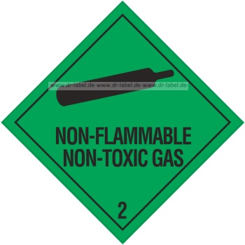 Gefahrgutetikett Klasse 2.2 mit Text "NON-FLAMMABLE NON-TOXIC GAS" 10x10 Papier