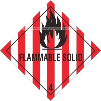 Gefahrgutaufkleber für die Gefahrgutklasse 4, Unterklasse 4.1 mit Textaufdruck "FLAMMABLE SOLID"