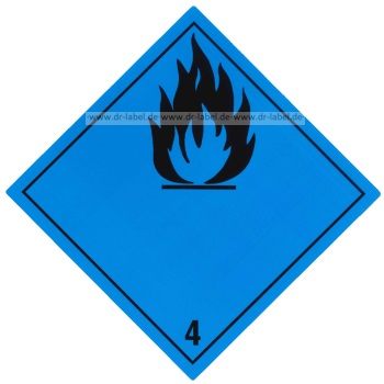 Symbol: schwarze Flamme auf blauem Hintergrund, Ziffer 4 in der unteren Ecke.