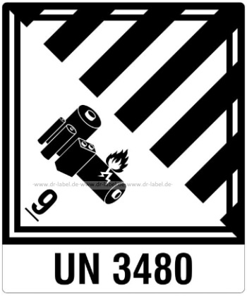 Gefahrgutaufkleber für die Gefahrgutklasse 9 mit Batteriesymbol.