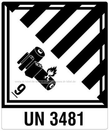 Gefahrgutaufkleber für die Gefahrgutklasse 9 mit Batteriesymbol.