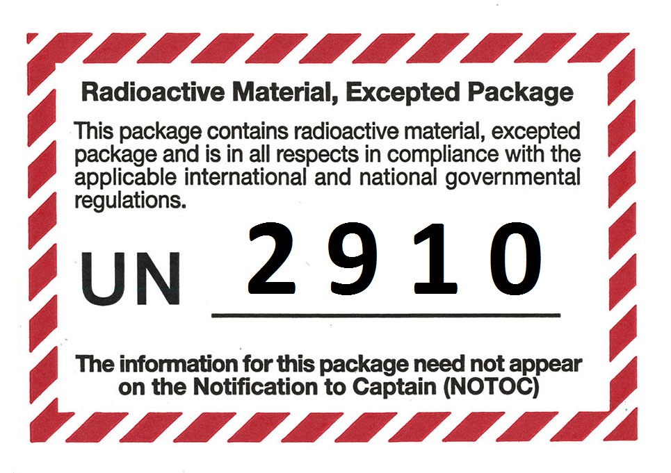 Gefahrgutetikett "RADIOACTIVE MATERIAL, EXCEPTED PACKAGE" mit UN-Nummerneindruck 2911
