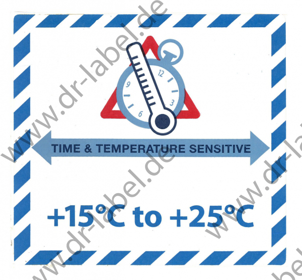 Gefahrgutetikett "TIME & TEMPERATURE SENSITIV" mit Temperatureindruck "+15°C to +25°C