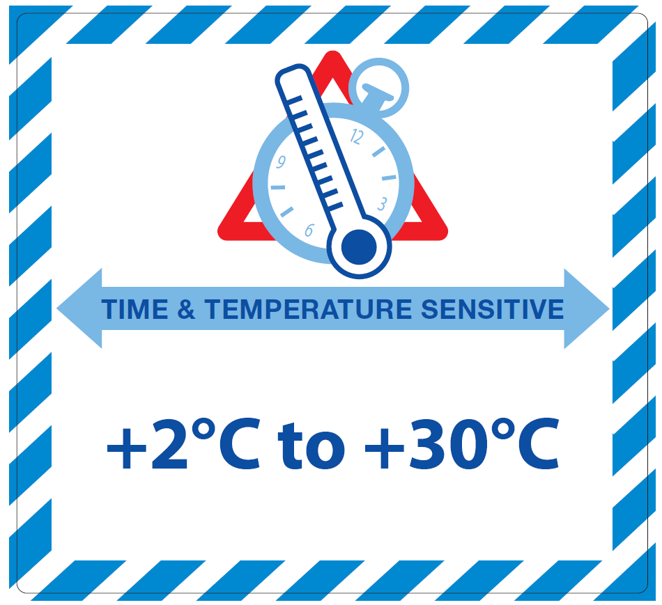 Gefahrgutetikett TIME & TEMPERATURE SENSITIV mit Temperatureindruck +2°C to +30°C