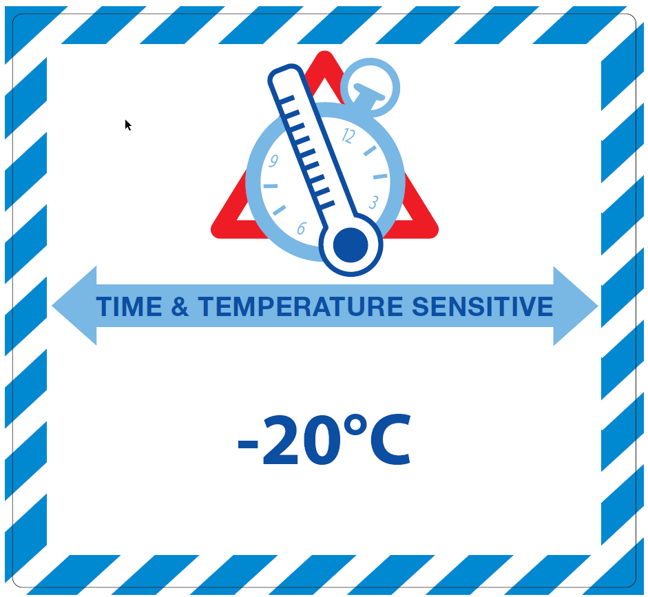 Gefahrgutetikett "TIME & TEMPERATURE SENSITIV" mit Temperatureindruck "-20°C"