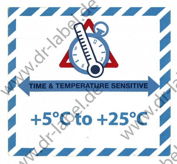 Gefahrgutetikett "TIME & TEMPERATURE SENSITIV" mit Temperatureindruck "+5°C to +25°C"