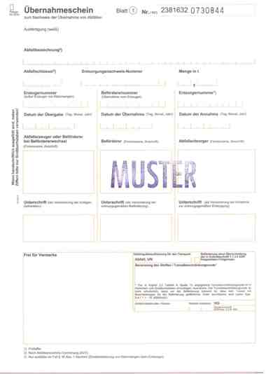 Übernahmeschein 2-fach2-fachzum Nachweis der Übernahme von Abfällenselbstdurchschreibend