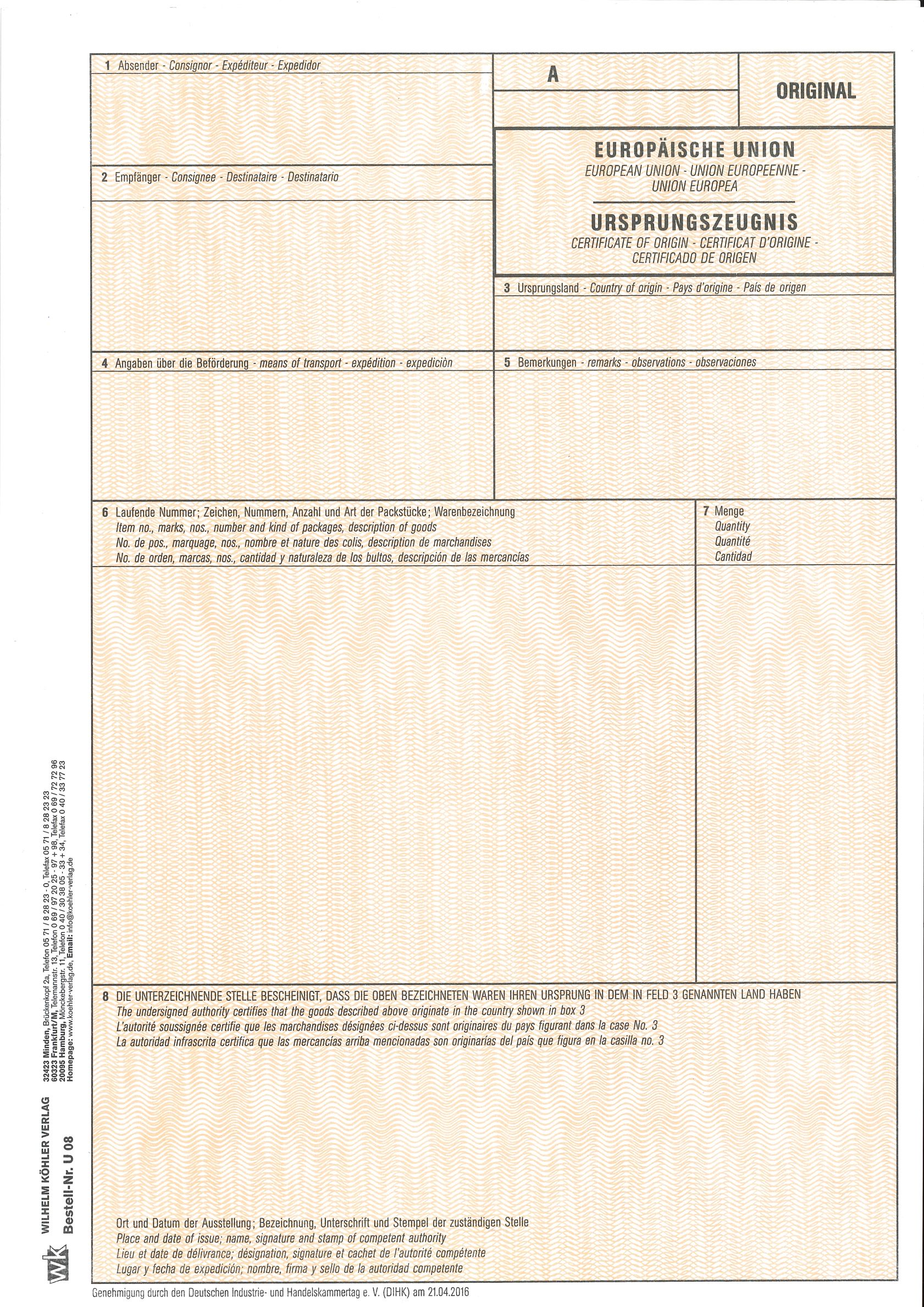 Ursprungszeugnis neutral Laser, 1-fach OHNE Nummerierung