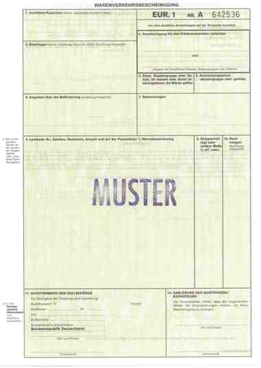 Warenverkehrsbescheinigung EUR.1, selbstdurchschreibend