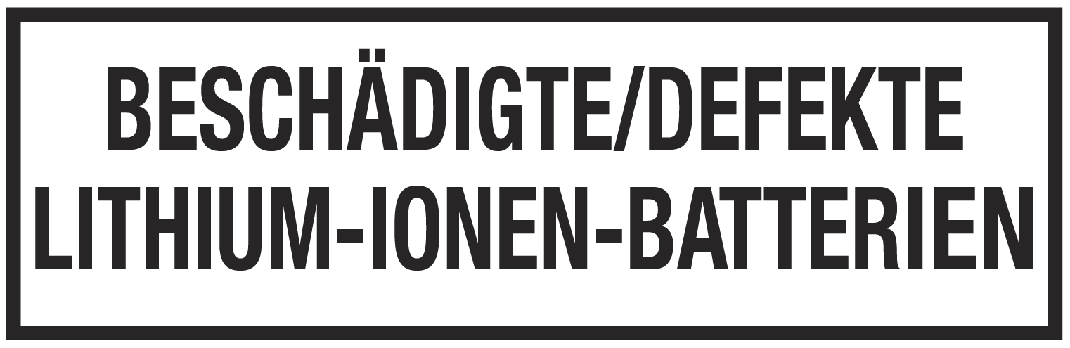 Zusatzetikett beschädigte/defekte Lithium-Ionen-Batterien